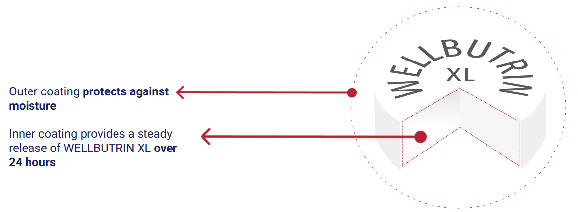Only brand-name WELLBUTRIN XL offers SmartCoatTM technology with steady 24-hour coverage2-4